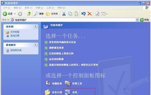 單擊“性能和維護”按鈕后會出現如圖所示,這時我們可以看到有一個“系統”選項,單擊該選項。