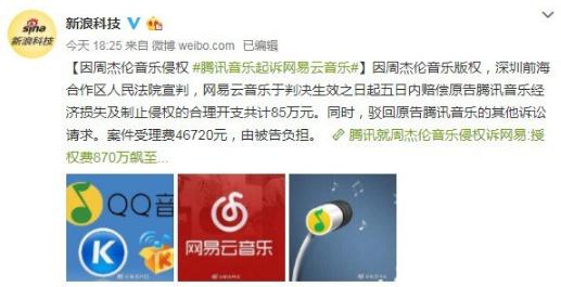 騰訊旗下的QQ音樂和網易旗下的網易云音樂是目前兩款最受歡迎的音樂APP,當然兩者也一直處于激烈的競爭關系。根據國內多家權威媒體報道稱,騰訊就周杰倫音樂侵權訴網易,最終法院原告騰訊音樂勝訴。這則消息一經傳出,瞬息間成為民眾們熱議的話題。