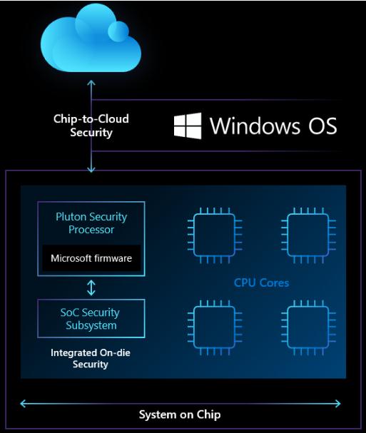 據悉,在 Xbox 主機和 Azure Sphere 生態系統中率先得到應用的 Pluton 安全處理器,可實現類似于可信平臺模塊(TPM)的全棧芯片到云安全特性。