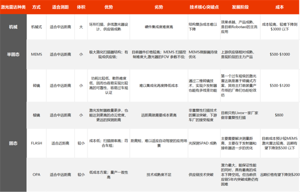 不同類型的激光雷達,優缺點也很明顯。