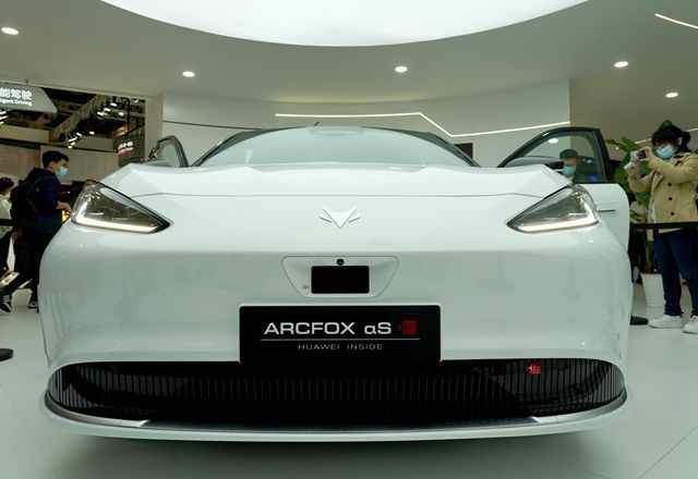 4月19日,華為Huawei ADS高階自動駕駛系統(tǒng)展車在上海國際車展上亮相。新華社圖