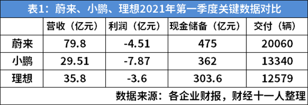 其實現在蔚小理三家的財務狀況都比較理想,2021年第一季度,三家雖然都在虧損,但現金儲備都在300億元以上(見表1),這種規模的現金儲備可以說底氣十足了。但即便如此,融資腳步依然緊鑼密鼓,對于資金,造車新勢力永遠饑渴。