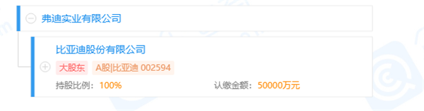 企查查股權穿透顯示,該公司由弗迪實業有限公司 100% 控股,后者為比亞迪的全資子公司。