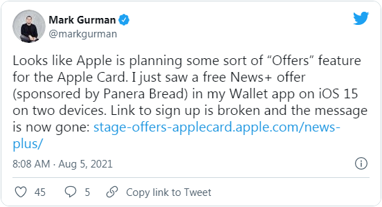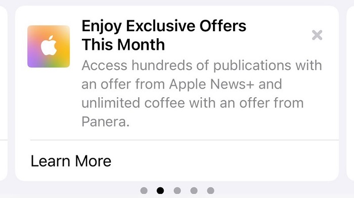 MacRumors 報(bào)道稱:蘋(píng)果已于本周開(kāi)始向 Apple Card 用戶推廣獨(dú)家優(yōu)惠,且在訪問(wèn)錢(qián)包應(yīng)用的時(shí)候,相關(guān)優(yōu)惠將直接呈現(xiàn)在用戶眼前。由彭博社 Mark Gurman 在 Twitter 上分享的消息可知,蘋(píng)果為 Apple Card 用戶提供了免費(fèi)訪問(wèn) Apple News+、以及在 Panera Bread 下單時(shí)的咖啡無(wú)限續(xù)杯福利。