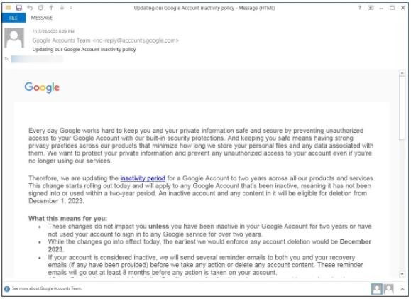 谷歌于上周末向用戶發送電子郵件,再次提醒用戶,官方將于 2023 年 12 月 1 日清理連續 2 年未活動的休眠賬號。