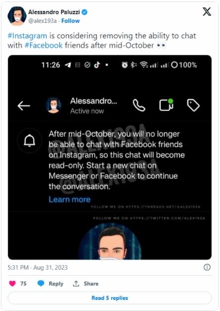 開發(fā)者 Alessandro Paluzzi 通過逆向編譯應用程序,暗示在今年 10 月開始,Meta 公司將會關閉 Facebook 和 Instagram 跨應用消息。