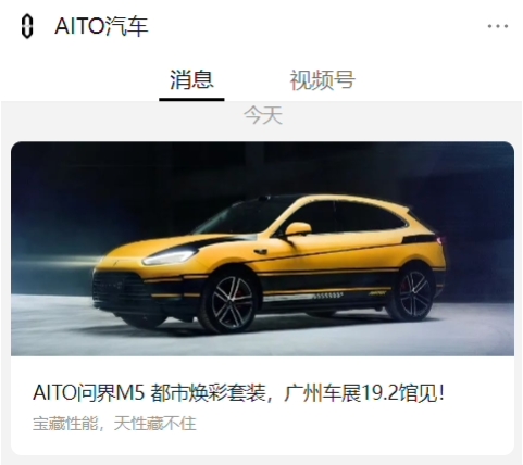 AITO 問界 M5 汽車都市煥彩套裝亮相:黃黑配色,廣州車展發布 09:32:28