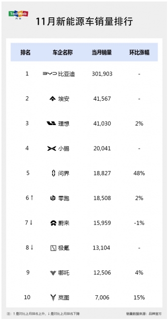 每月月初又到了各家新能源車企放榜的日子,11月各家交付數據也正式出爐。