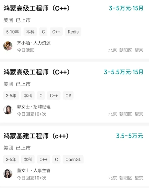 拿美團來說,甚至開出了月薪30-55k且15薪的高工資來吸引鴻蒙開發(fā)者。這都說明鴻蒙開發(fā)者已經成為了新的就業(yè)風口。