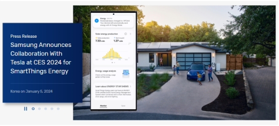 在 CES 2024 開幕之前,三星官網發布新聞稿,宣布與特斯拉展開智能家居合作。